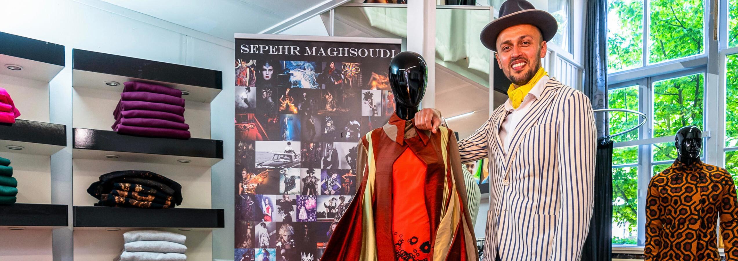 Sepehr Maghsoudi is een koninklijk onderscheiden modeontwerper. Jij kunt hem bezoeken in zijn atelier / conceptstore op Muntstraat 7. Hij heeft bijna 15 jaar zijn eigen label en al meer dan 24 collecties op zijn naam staan. Nieuwsgierig? Neem alvast een kijkje op: www.sepehrmaghsoudi.com.